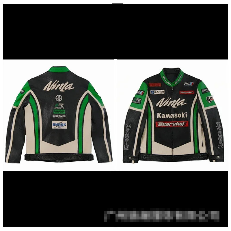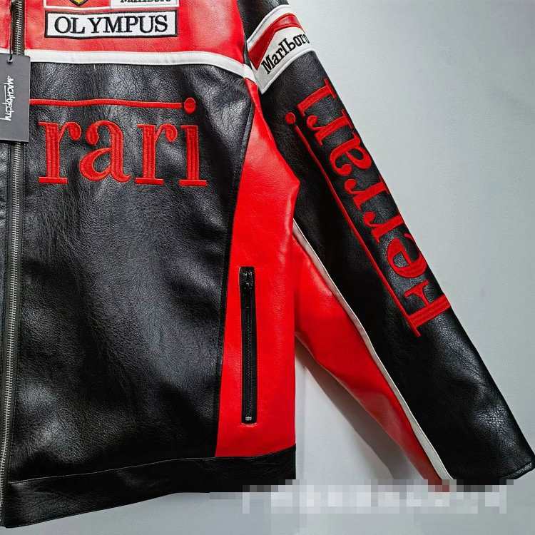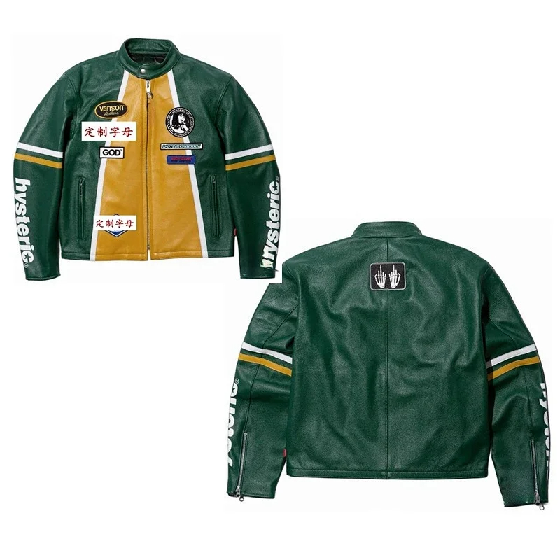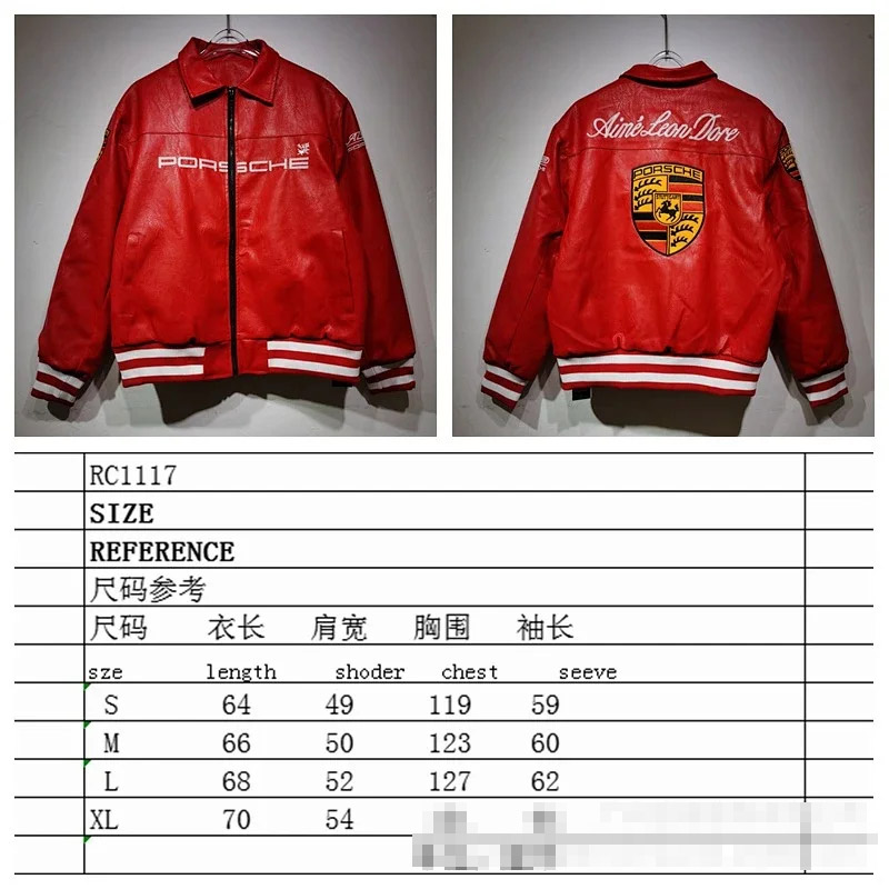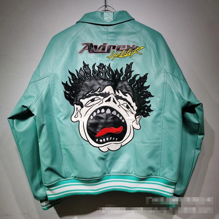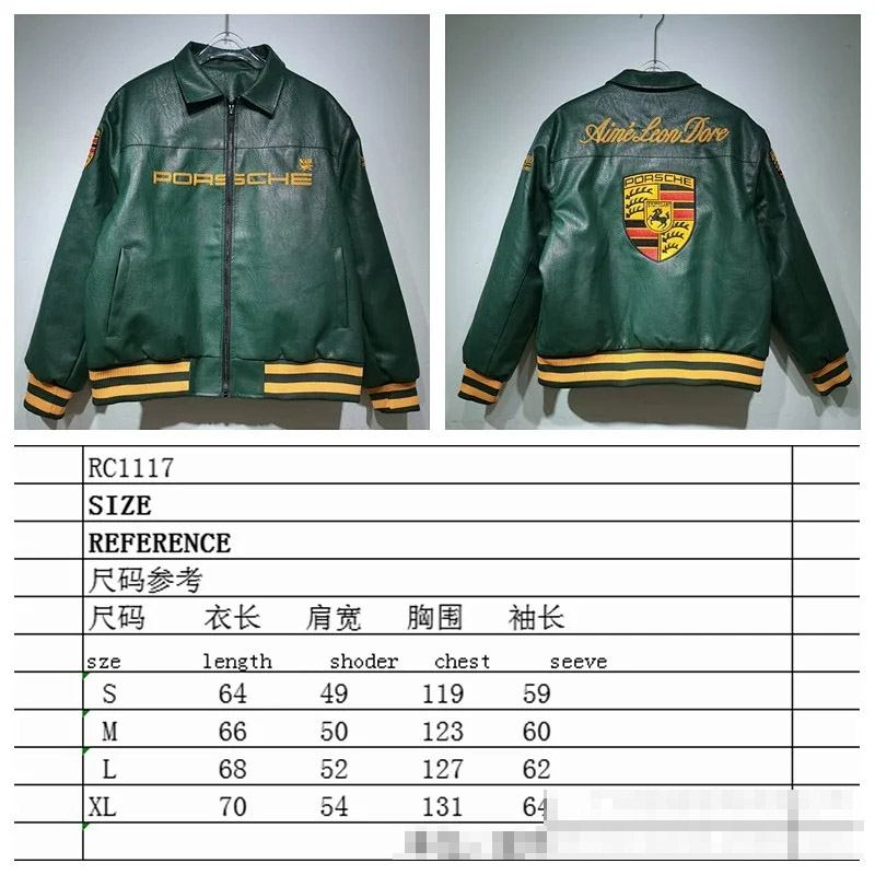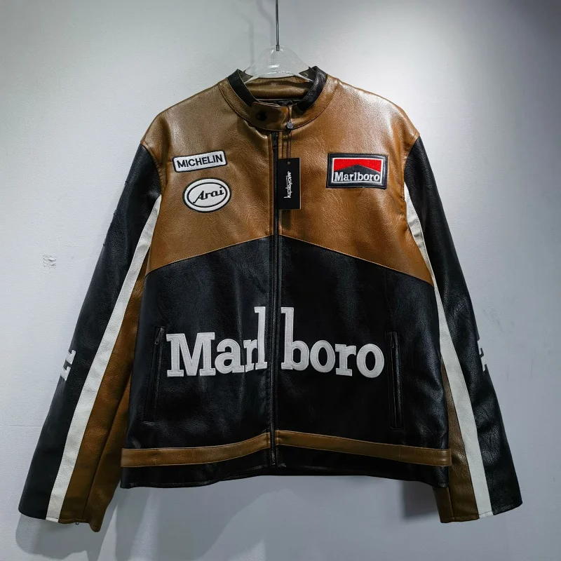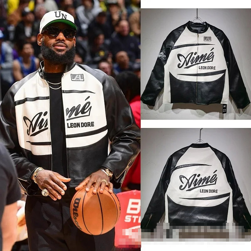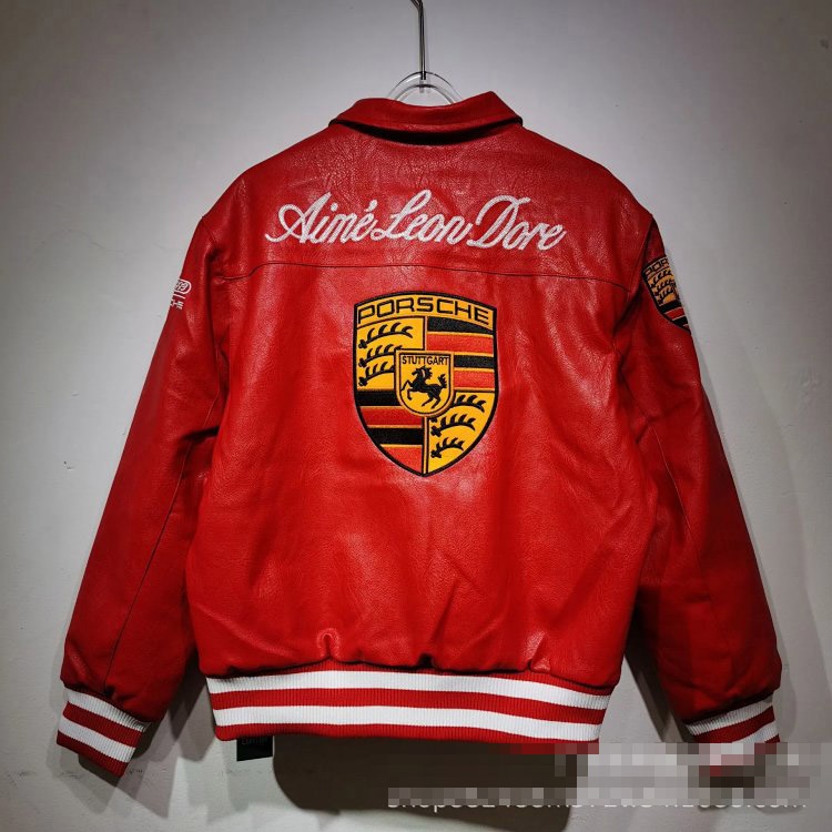 Marlboro Aime Leon Dore Maglia da baseball con cerniera in pelle-5517
