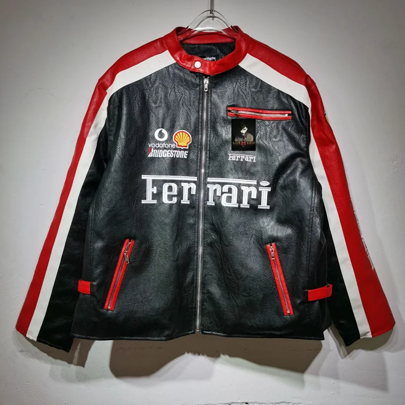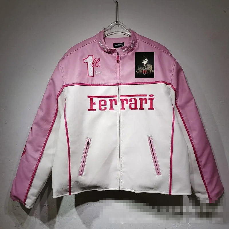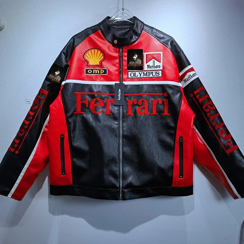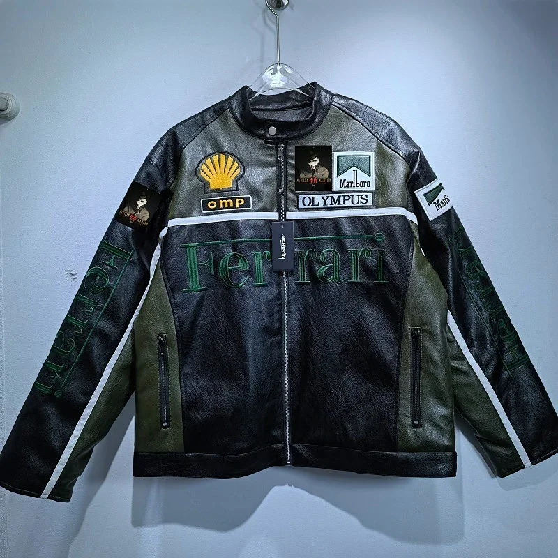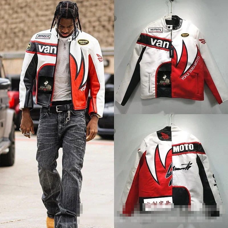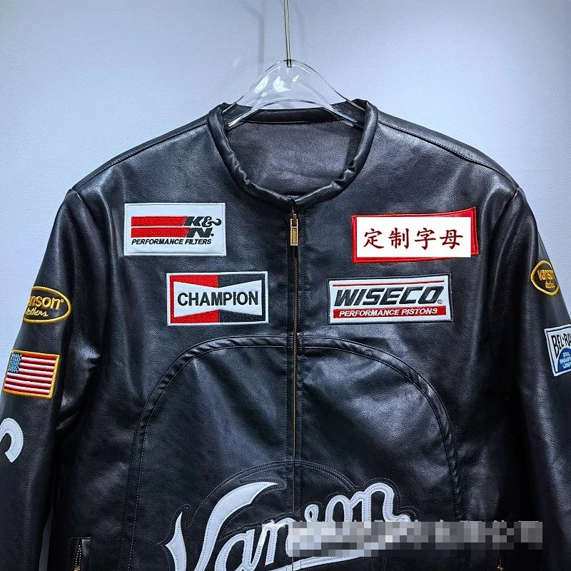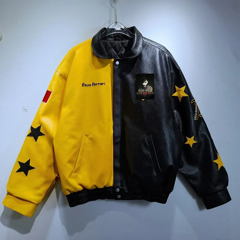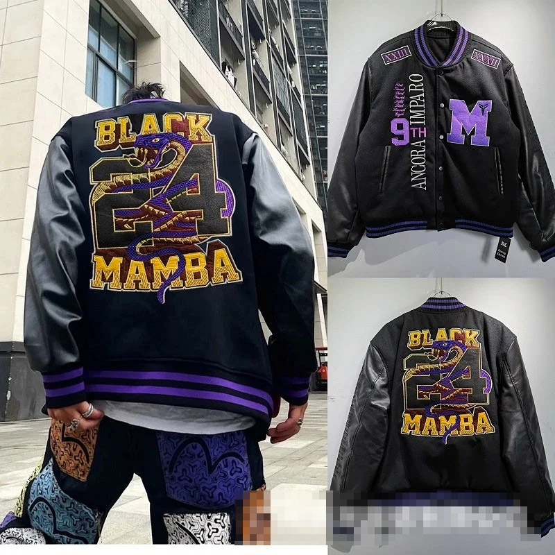 Marlboro Aime Leon Dore Maglia da baseball con cerniera in pelle-5517